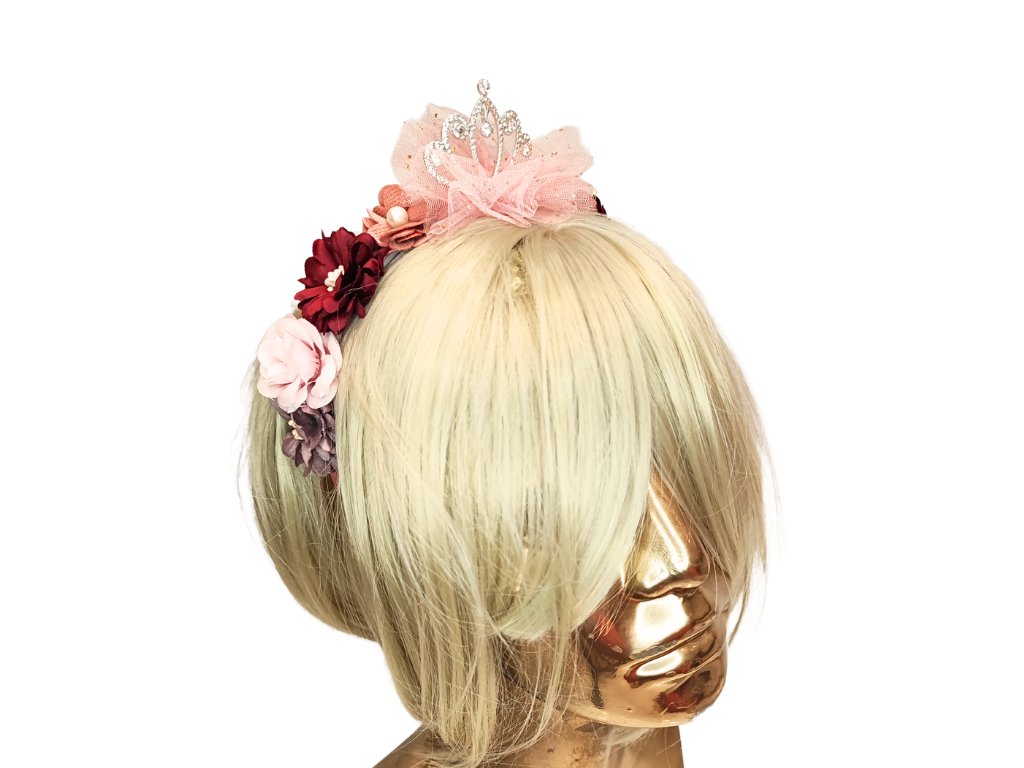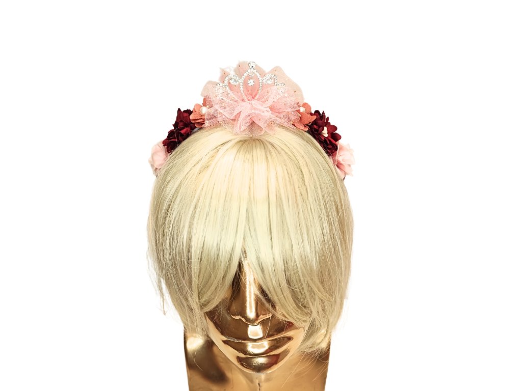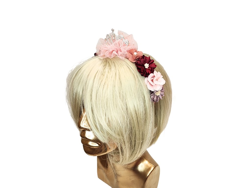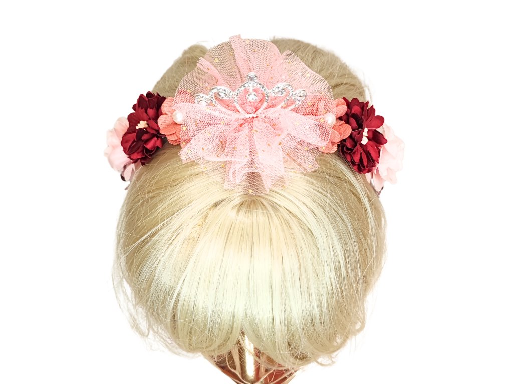 Čelenka Juliana udělá radost všem princezničkám. Zdobí ji krásné květy z kvalitní látky, perličky, v organze je usazená krásná korunka z kvalitního kovu vykládaná drobnými zirkony. Korunka je pevně přišitá k čelence pevnou saténovou nití, která je vyhledávaná pro svou pevnost.