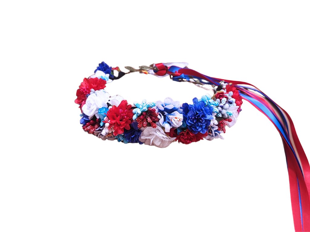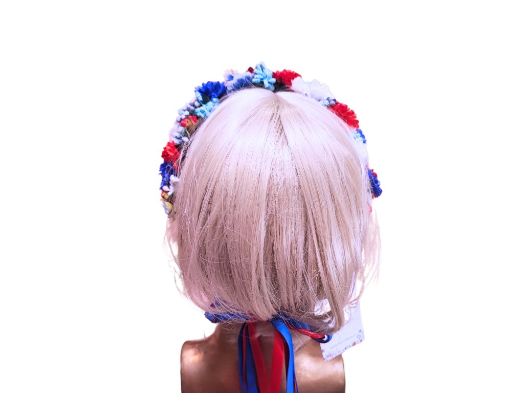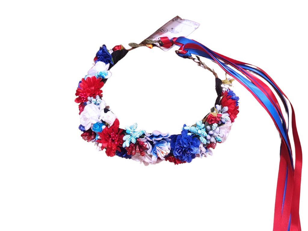 Náš folklórní věneček není běžná čelenka. Je to zavazovací čelenka.
