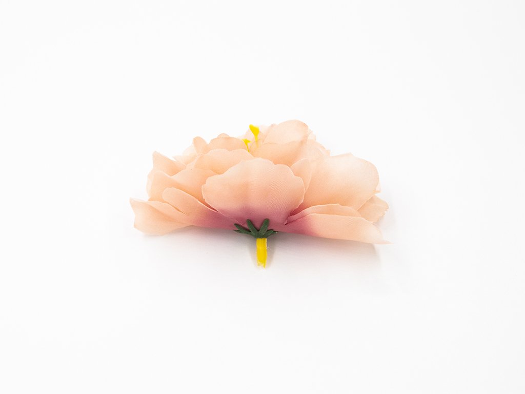 - Květ je látkový, ze spodní strany má 3 mm krátkou plastovou stopečku, která se dá v případě potřeby odstřihnout, ale je důležité zachovat aspoň 1 mm, jinak by se mohl květ rozpadnout. Pokud se tak stane, jde květ snadno vrstvu po vrstvě slepit.