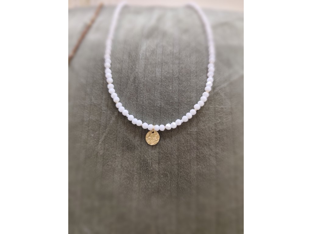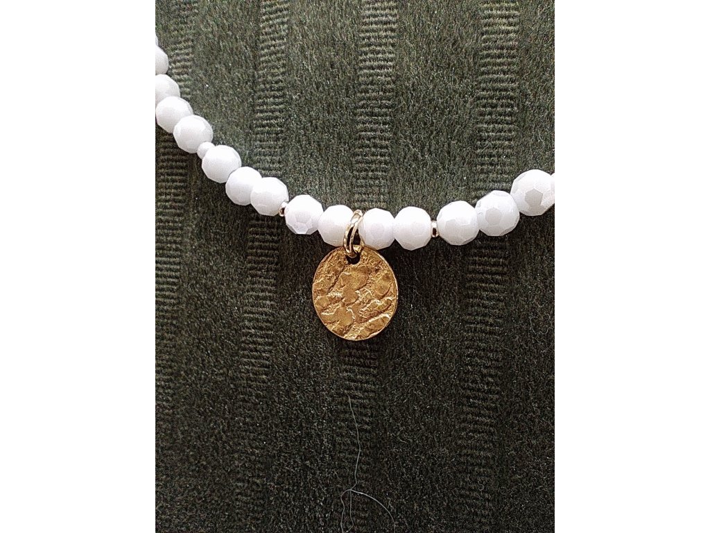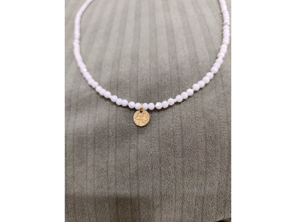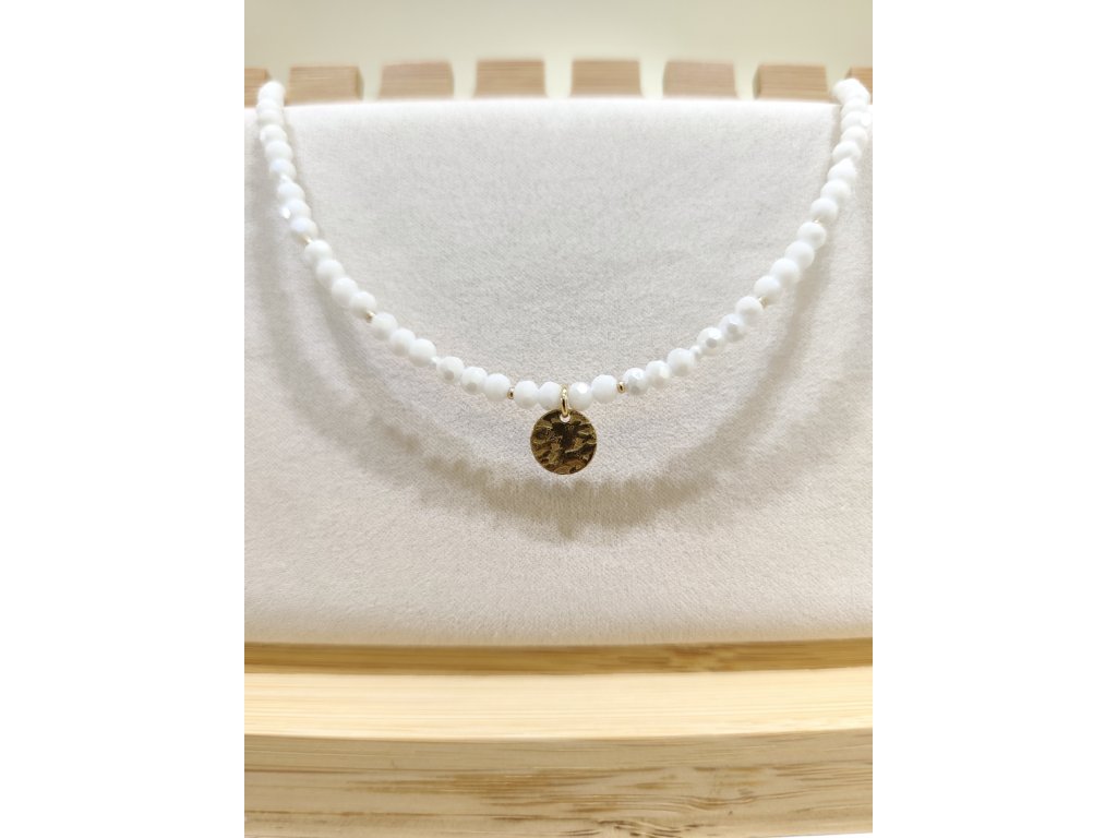Náhrdelník bílý se zlatou plackou